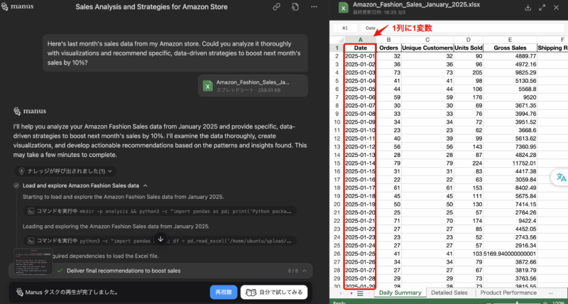 2025年1月分のAmazonファッション販売データ分析を完了し、来月の売上を10%向上させるための具体的なデータ駆動型戦略を策定しました。