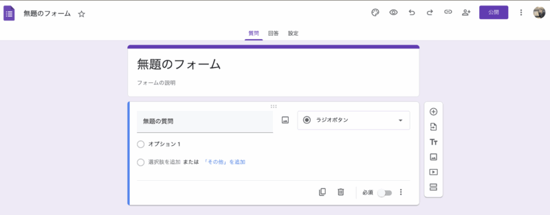 - 質問タイプ(選択式・チェックボックス・記述式など)を選ぶ