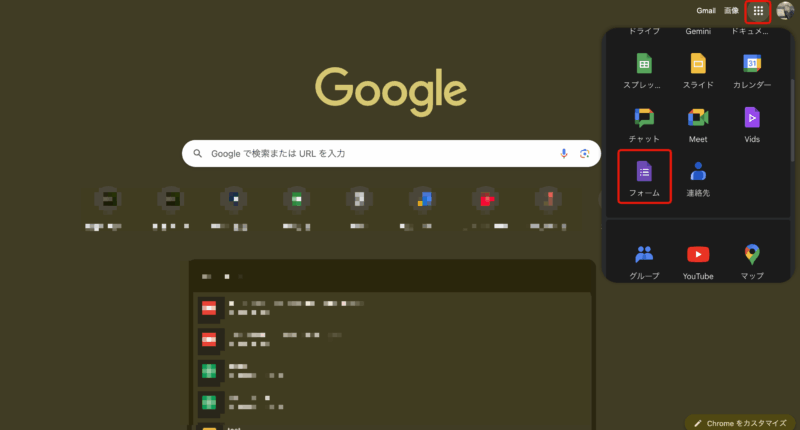 - Googleドライブを開くorChromeのアプリからフォームを選択