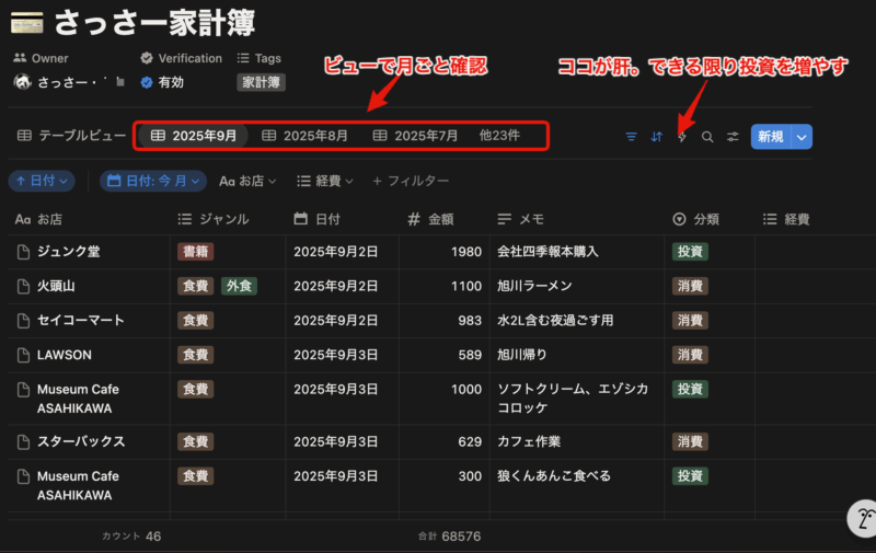私はNotionで家計簿を作成し、お金の使い方を日々振り返っています。