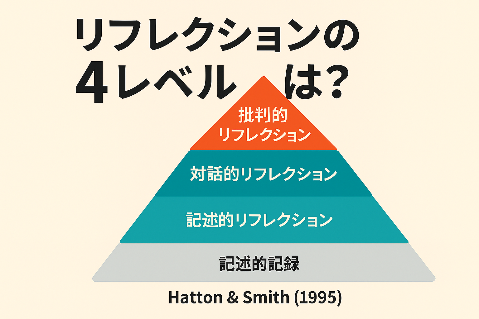 Hatton & Smith(1995)の「リフレクションの4レベル」は、教育実践を単なる振り返りから深い省察へと発展させる枠組みです。