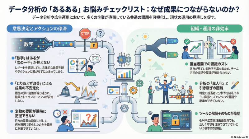 ・ GA4や広告管理画面を見ても、正直よく分からない