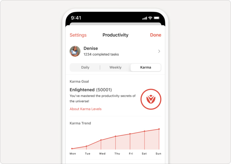 • タスク完了ごとに「カルマポイント」が貯まり、レベルが上がる仕組み